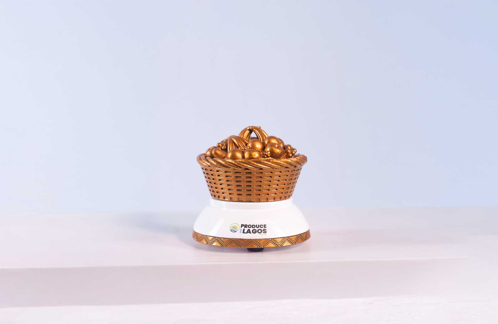 The chosen design was a basket filled with food produce, mounted on a base inscribed with Produce for Lagos.